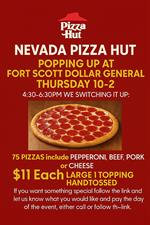 Get ready to flip your Thursday into pizza night! Nevada Pizza Hut is rolling into Fort Scott Dollar General for one epic evening of saucy goodness.
